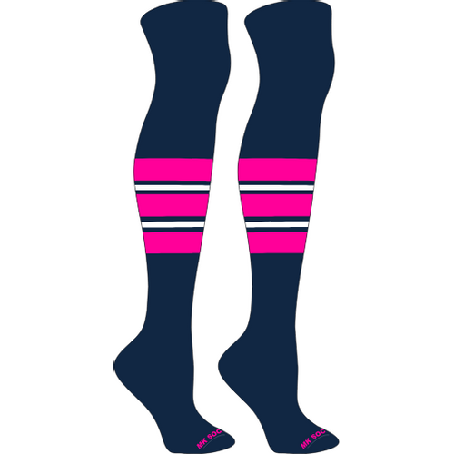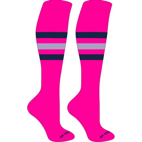 MK Socks Striped Knee High Baseball, Football Socks (F) Marlin Teal, Purple, White