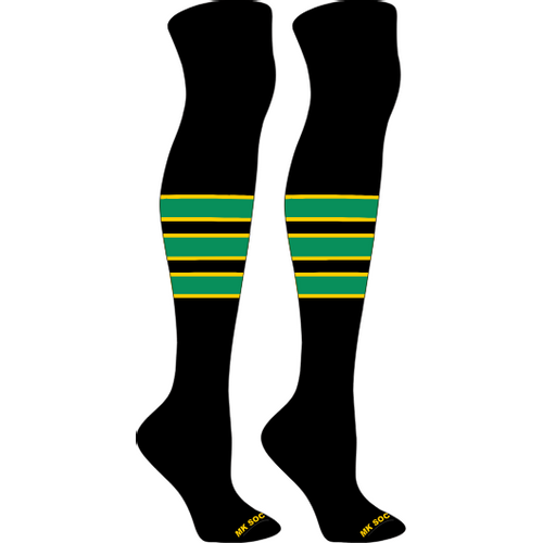 MK Socks Striped Knee High Baseball, Football Socks (C) Navy, Grey, Old Gold
