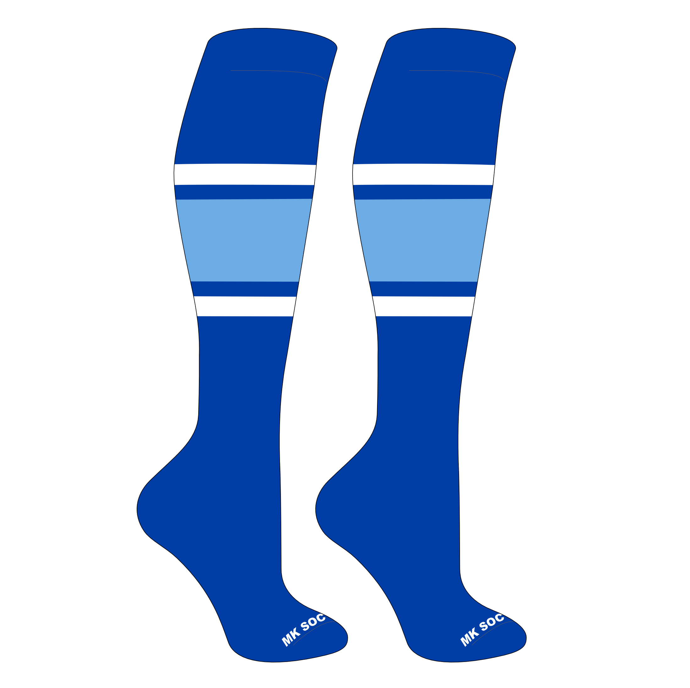 MK Socks Striped Knee High Baseball, Football Socks (B) Royal, White, Columbia Blue