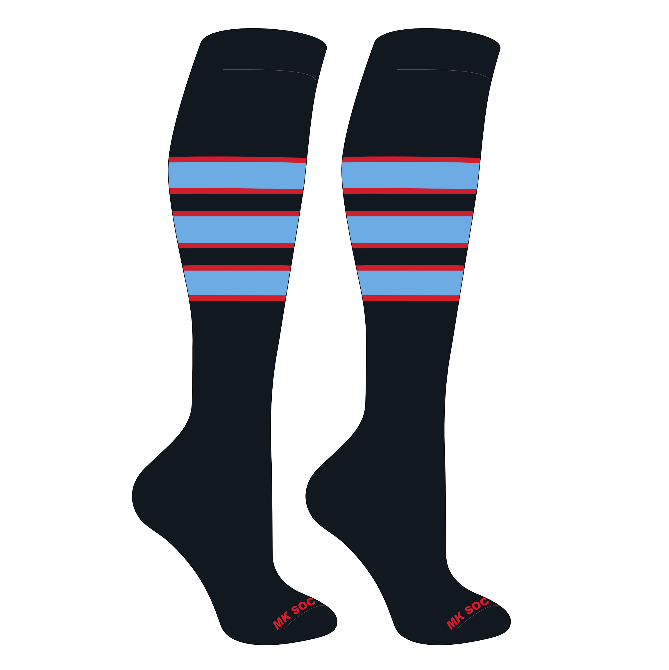 MK Socks Striped Knee High Baseball, Football Socks (C) Black, Red, Columbia Blue